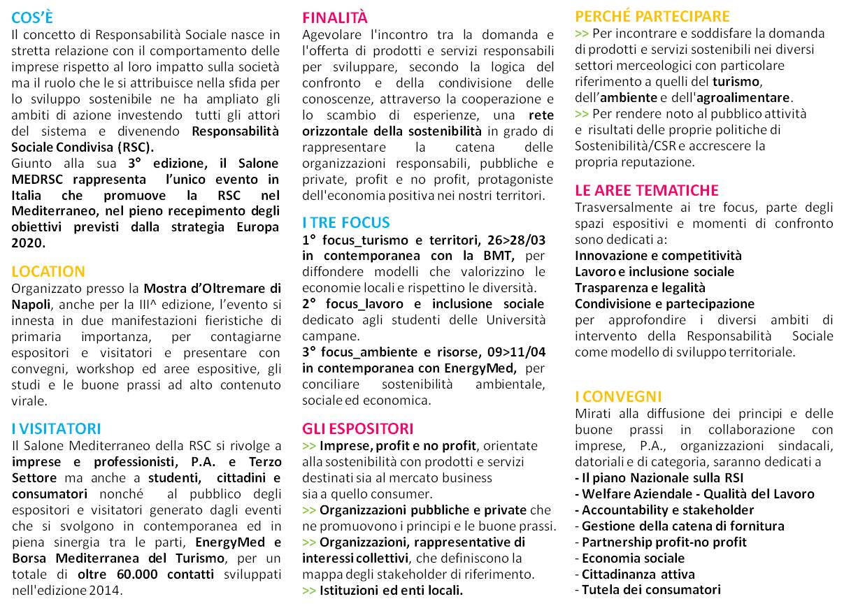 Spazio alla Responsabilità con il SALONE MEDITERRANEO DELLA RESPONSABILITÀ SOCIALE CONDIVISA (RSC) promuove:
