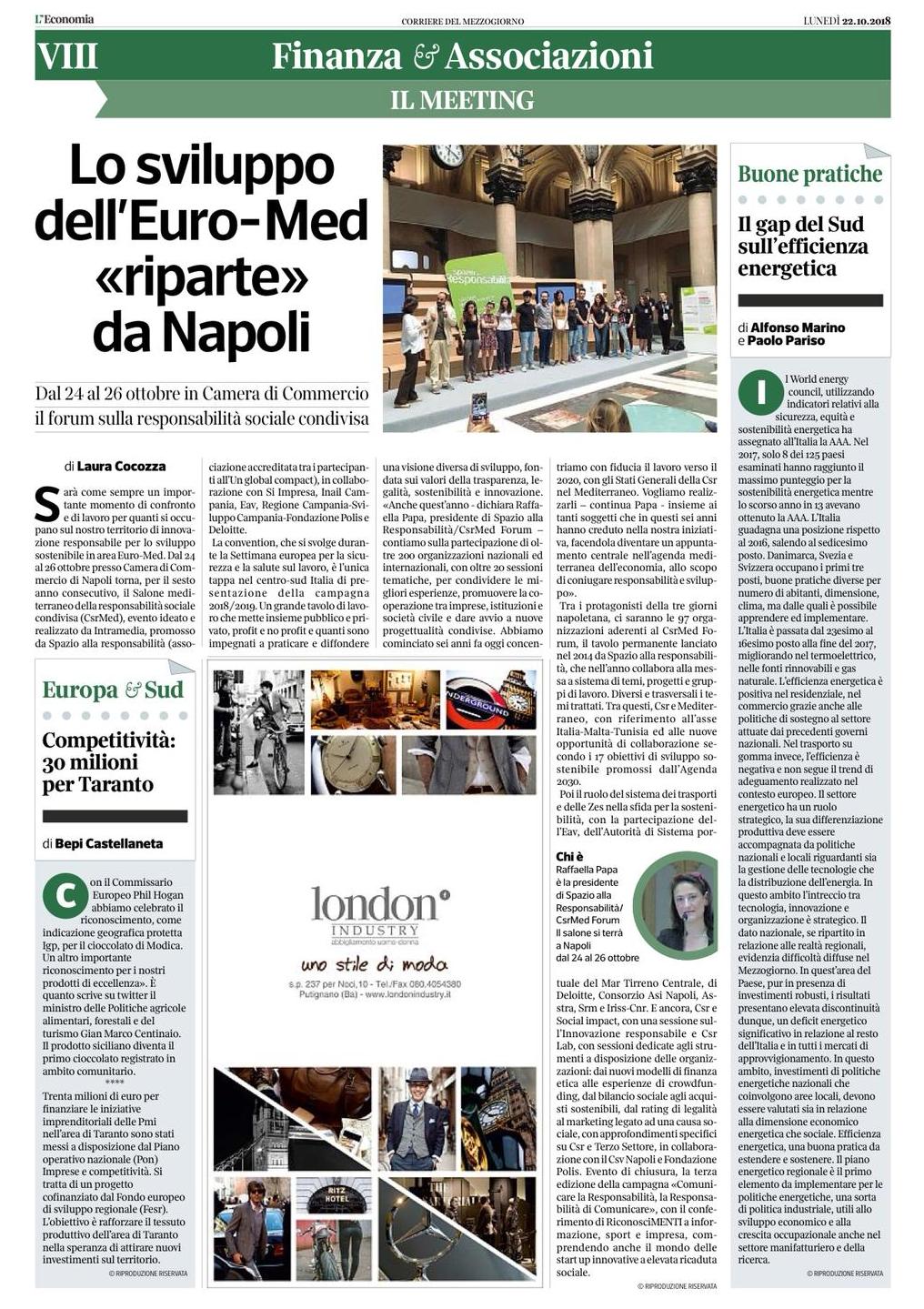Alcuni titoli di rassegna stampa | Corriere del Mezzogiorno - Economia | Mattino | Repubblica | Comunicare il Sociale | La Gazzetta di Napoli | Videonews di chiusura... ...